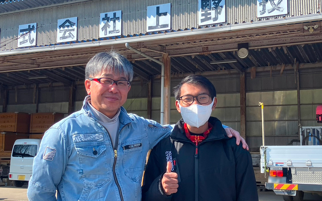 - 私は、上野技建にとって初めての実習生として受け入れていただきました。専門的な技術や知識が必要な業界ということもあり、実際に仕事を始めたときは大変なことも多かったです。来日前に漢字や日本語での会話の勉強もしていたのですが、実際に来てみると思ったよりも早口で、慣れるまでは大変なこともありました。ただ、社長や社長の奥様をはじめ、先輩方は皆さん本当に優しい方々ばかりだったので、辛い・苦しいと思うことはほとんどありませんでした。むしろ日本を知れる喜びのほうが大きくて「上野技建に来れてよかった」と心から思っています。